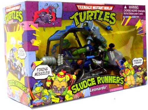 When the time comes for the Turtles to ride the mean streets or hit the sinister sewers, the only vehicle to pack enough mutant muscle power for Team Green - the Sludge Runners! Equipped with real firing projectiles and tricked-out for two riders apiece, these rockin' reptile racers rule the roads and sewers, making for mad mutant motoring on or below the streets