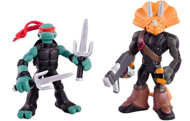 Let's have a look at our TMNT 3" Mini Mutants 2-pack: Raphael vs. Triceraton features